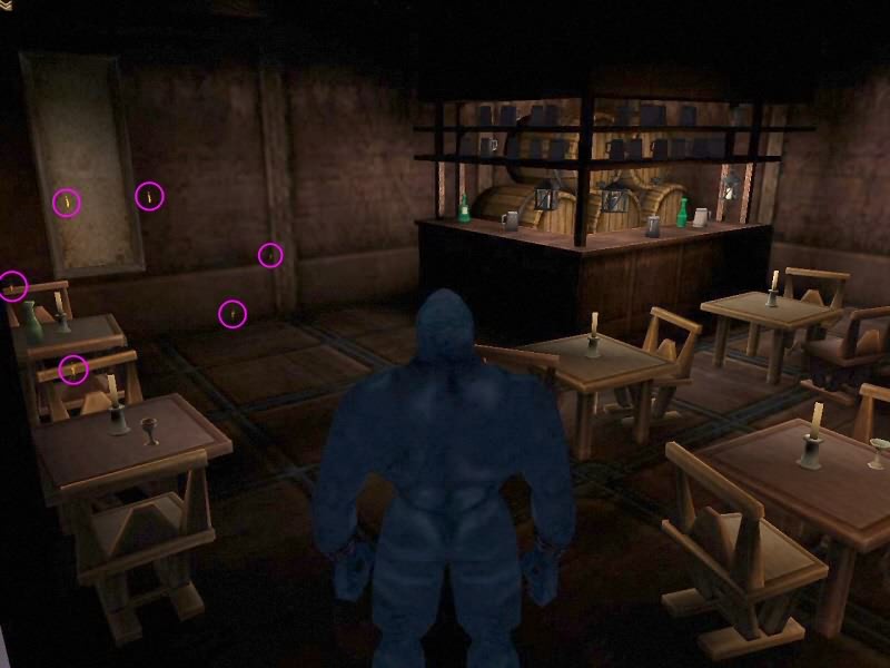- In Kada-El\'s tavern, standing one step behind the doorway, I have some strange \"candle flames\" in my eyes (statically positioned, but only visible for certain angles).